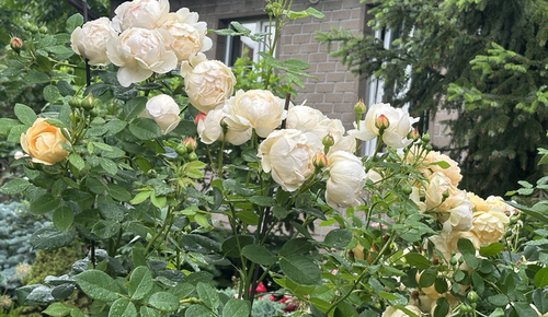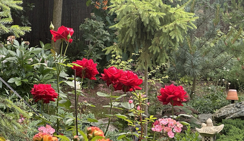 розы и хвойные отлично уживаются рядом