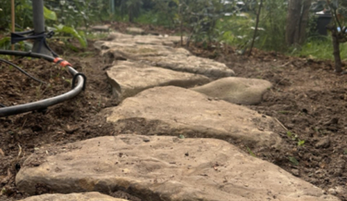мощение дорожки галтованным песчаником
